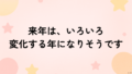 来年は、いろいろ変化する年になりそうです